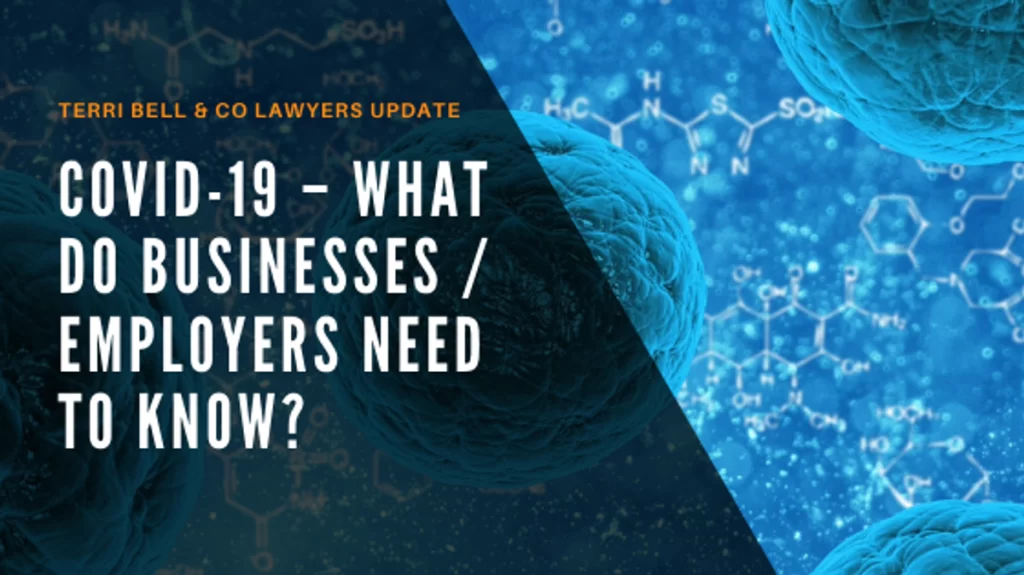 Terri Bell & Co can assist if you would like specific advice in relation to your obligations as an employer in relation to COVID-19, including leave requests, how to handle absences from affected employees, what policies you should have in place particularly with respect to working from home, any issues you may have with supplier contracts and the things you might want to consider putting into your contracts.